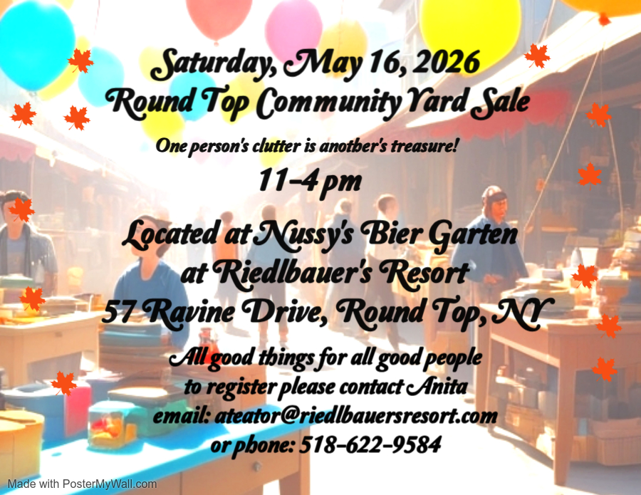 Saturday, May 16thRound Top Community Yard Sale at Nussy's Beir Garten