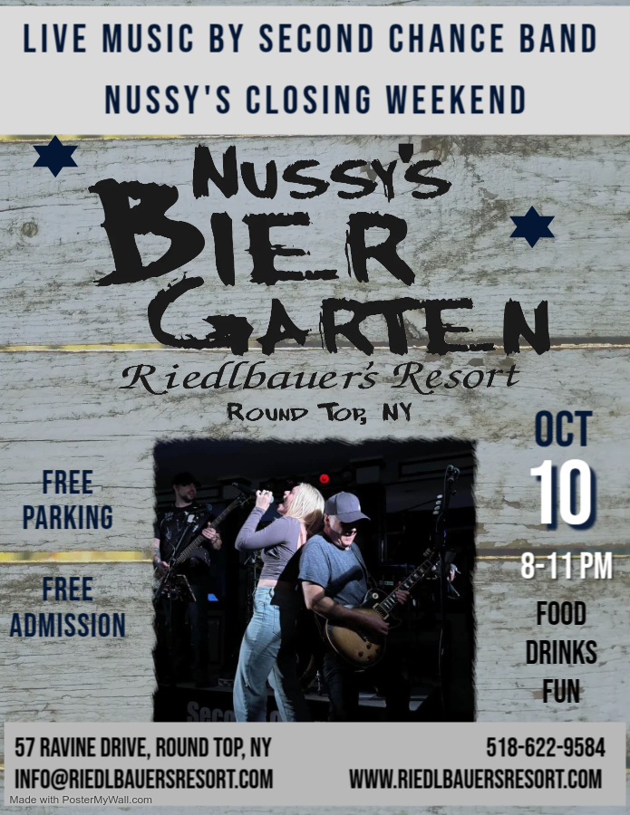 Oct 9th - 12thColumbus Day Weekend2 night minimumSaturday October 10thNussy's Closing Party with Second Chance Band at 8pm