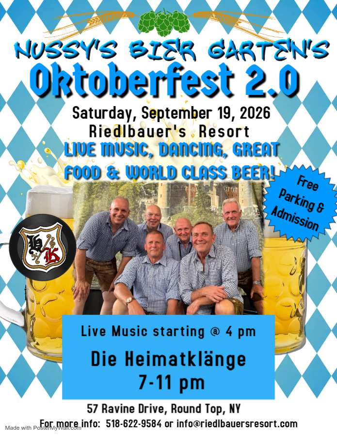 Saturday, September 19thOktoberfest 2.0 with die Heimatklange at 7pm