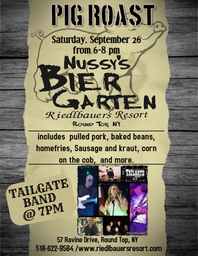 Sept 25th - 27thPig Roast 6pm - 8pm with Tailgate Band at 7pm