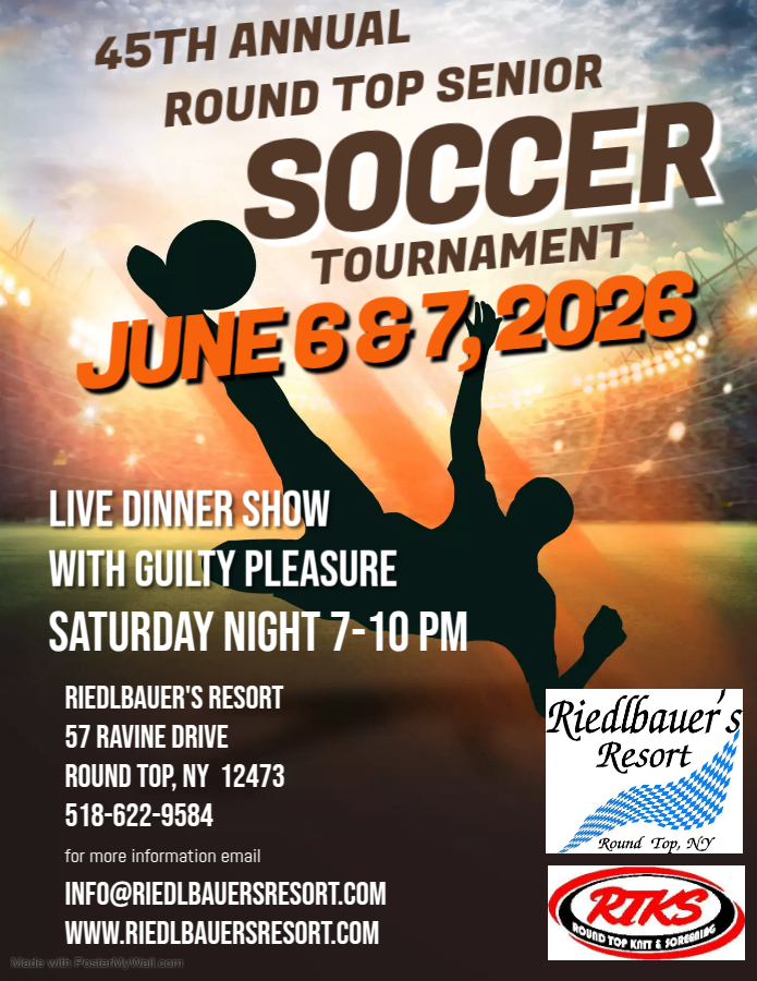 June 5th - 7thSenior Soccer TournamentTeams from New York City, Long Island, Germany, New England, and Upstate New YorkFree Parking and AdmissionFood and Drinks available all day & Entertainment at night