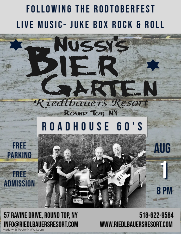 Saturday August 1stRodtoberfest with Roadhouse 60 at 8pm